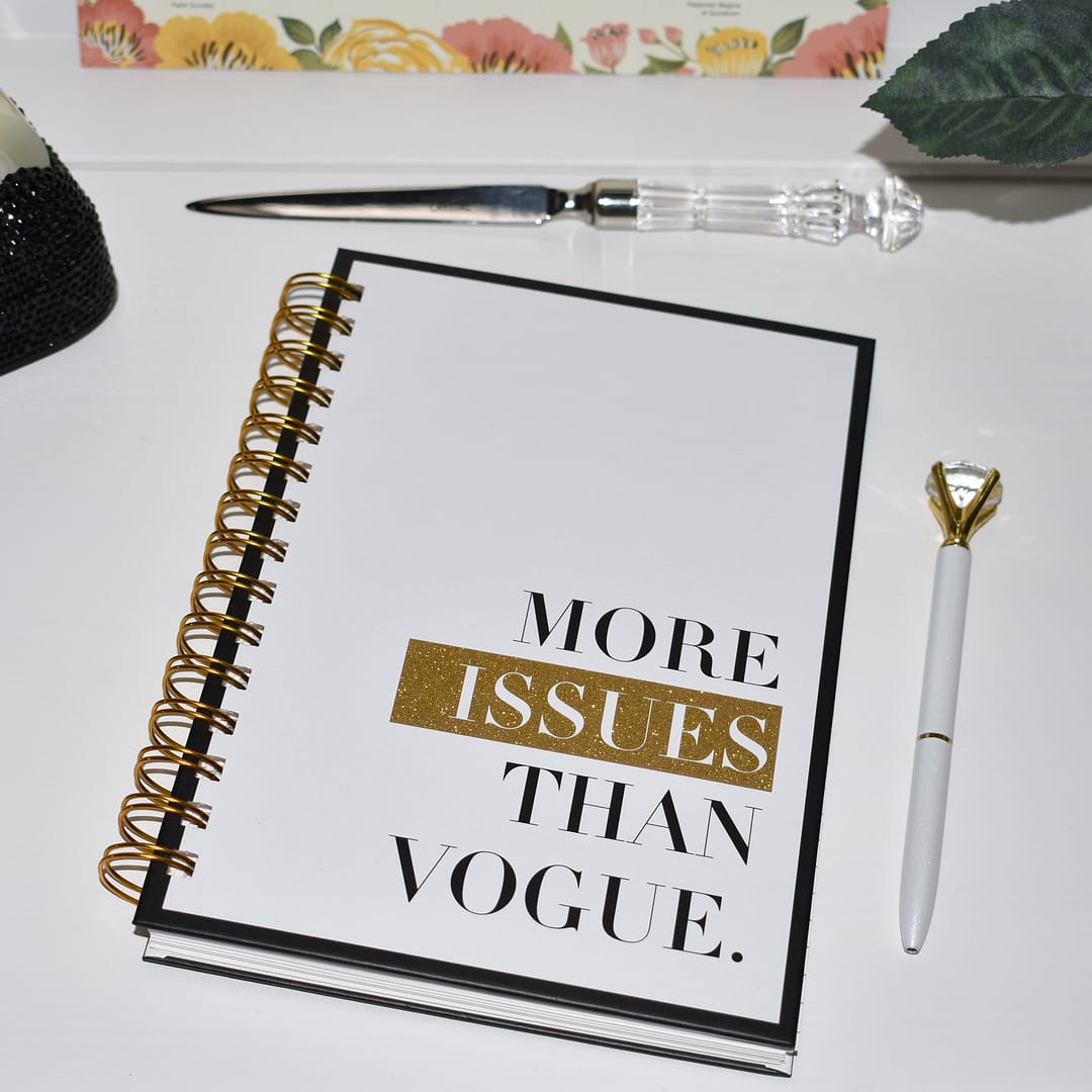 Do you ever feel like your life has more issues than Vogue? Don’t worry; you’re not alone! Add a little humor to your life with this “More Issues Than Vogue” journal. Whether you use it to record your deepest thoughts or as a notebook to liven the mundane task of note-taking, this journal is sure to get a laugh from all who behold it!