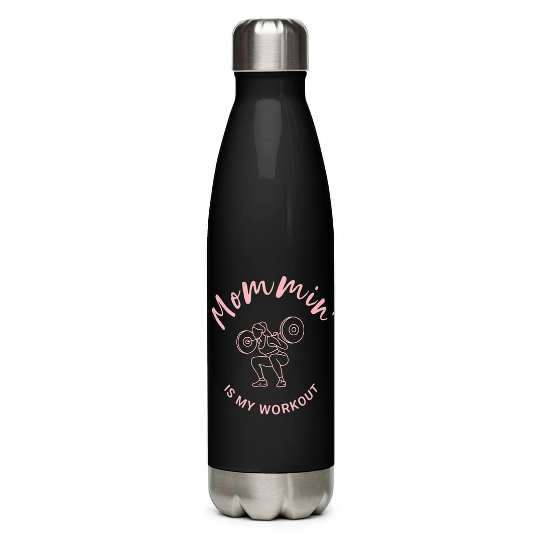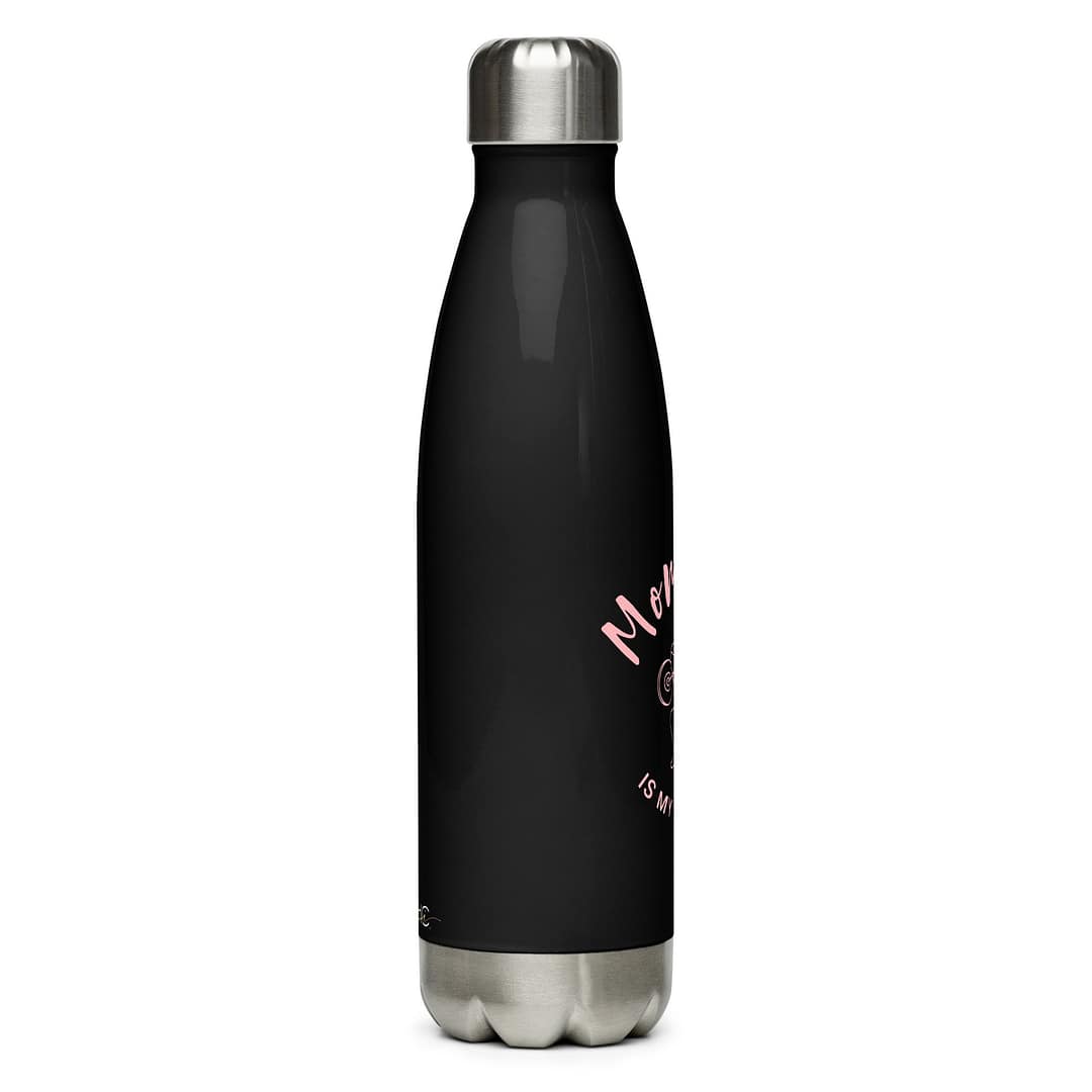 MOMMIN’ STAINLESS STEEL WATER BOTTLE, BLUSH ON BLACK: