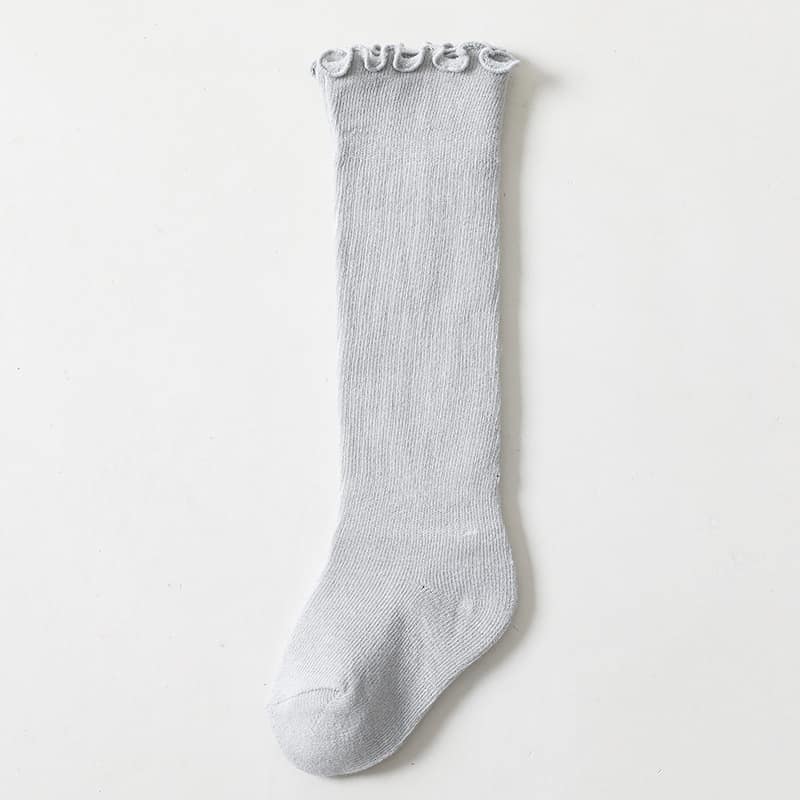 Gigi Chic is pleased to introduce its Baby Leg Warmer Socks. Made from the finest combed cotton, these socks feature a ribbed pattern with ruffled tops and are offered in light blue, grey, white, yellow, and pink.