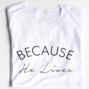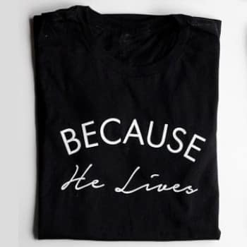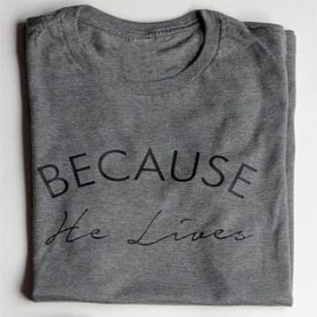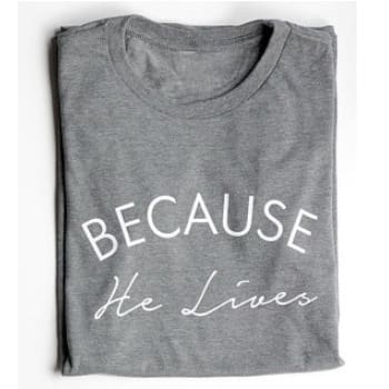 Gigi Chic’s Because He Lives Tee is a must have, offering a loving reminder to all around those who wear it.